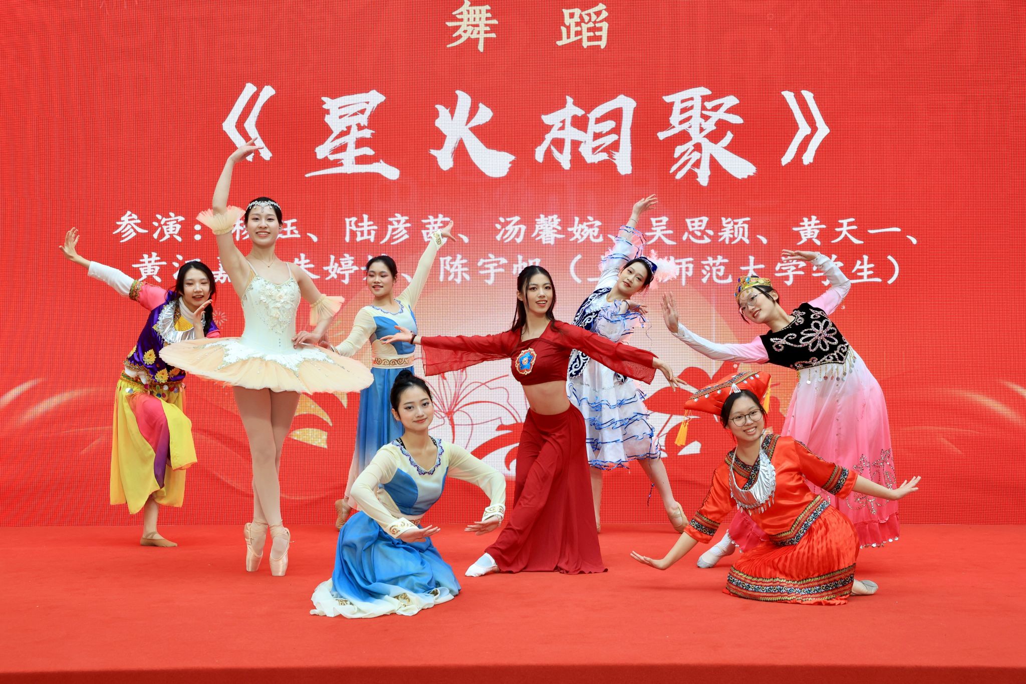 田林三小的同学们用纯真的童声合唱《春笋》,清新自然的歌声如同一股清泉,展现出孩子们蓬勃向上的朝气,恰似破土而出的春笋,充满无限生机。上海师范大学的学生们以舞蹈《星火相聚》,用灵动的舞步、富有感染力的表演,诠释了青年学子们如星星之火汇聚在一起,共同为梦想拼搏的精神。