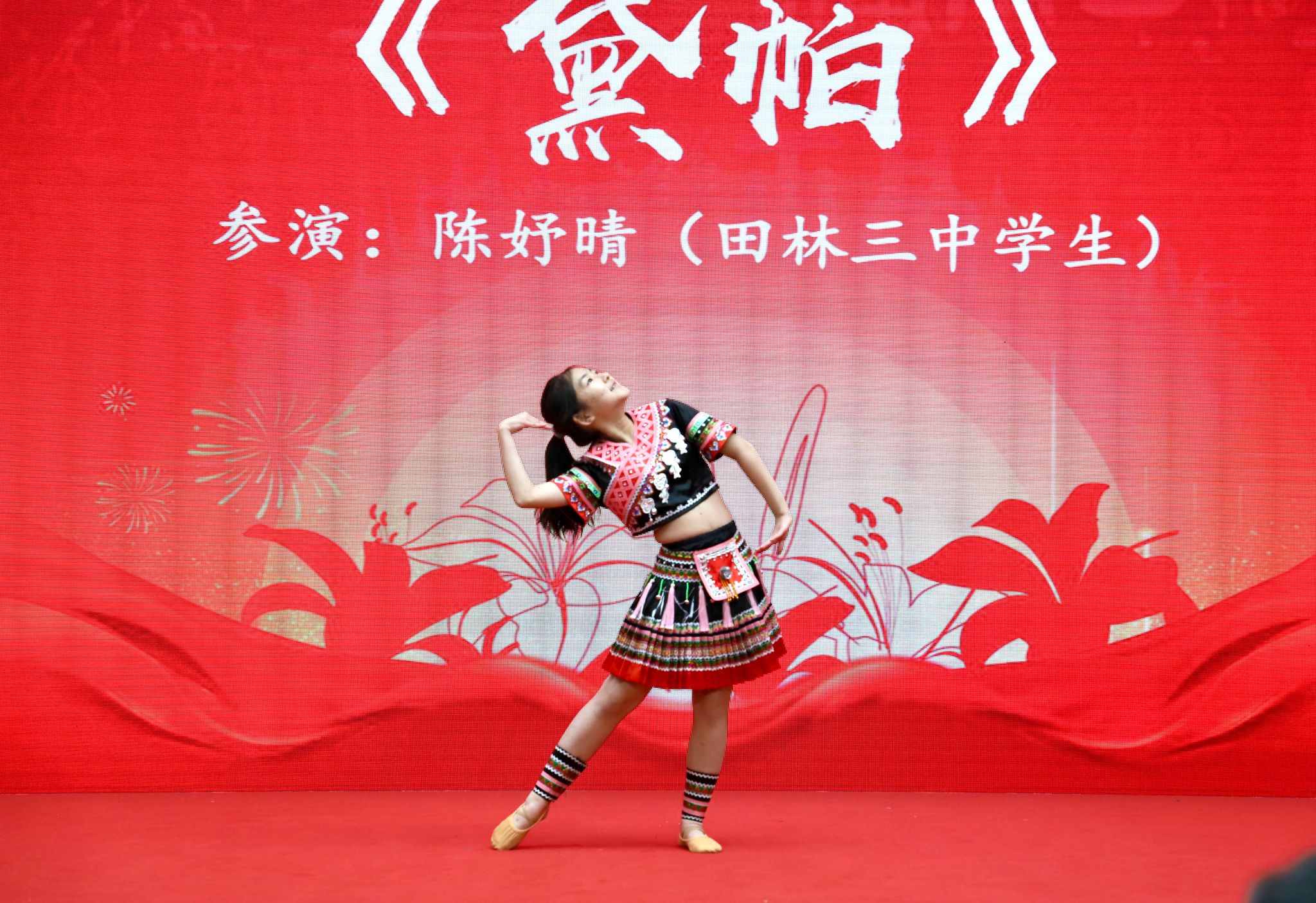 田林三中学生陈妤晴带来的独舞《黛帕》,以细腻的肢体语言和优美的舞姿,将苗族少女的婀娜展现得淋漓尽致,生动地呈现了苗族独特的文化风情。华东理工大学杨卓越、曾雅雯用一首《鲜花》,以悠扬的旋律和清澈的嗓音,传递出青春的活力与对生活的热爱,宛如春日里绽放的繁花,充满希望。